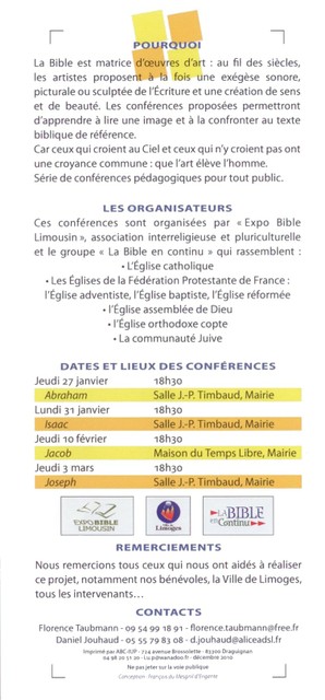 17 janvier 2011Quatre conférences audiovisuelles au croisement du récit biblique et de l'image...