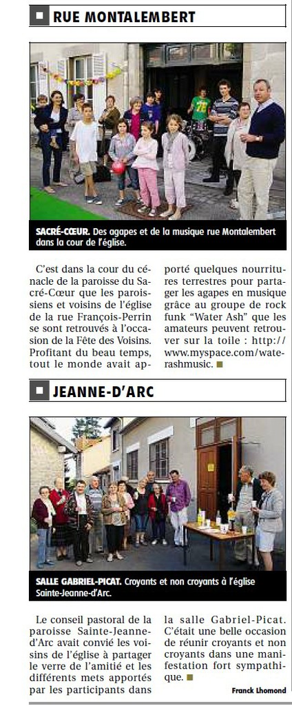 30 mai 2011Vendredi 27 mai dernier, nous avons vécu une belle fête des voisins rue Montalembert et à Ste Jeanne d’Arc. La presse en parle...