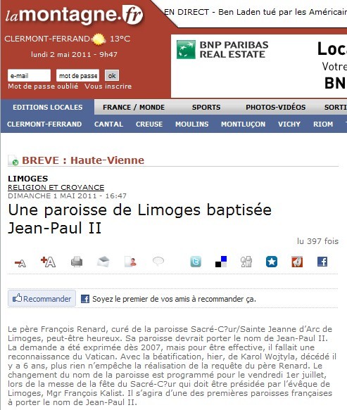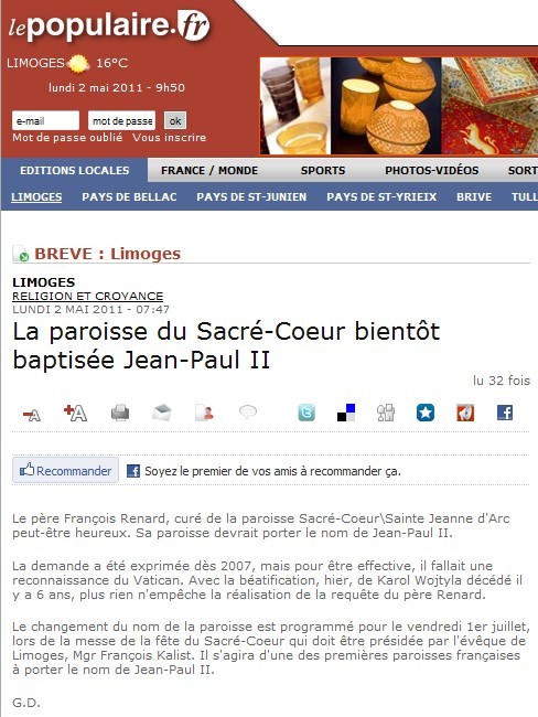 2 mai 2011Quelques journaux locaux ou nationaux parlent de nous et du futur patronage de notre paroisse...