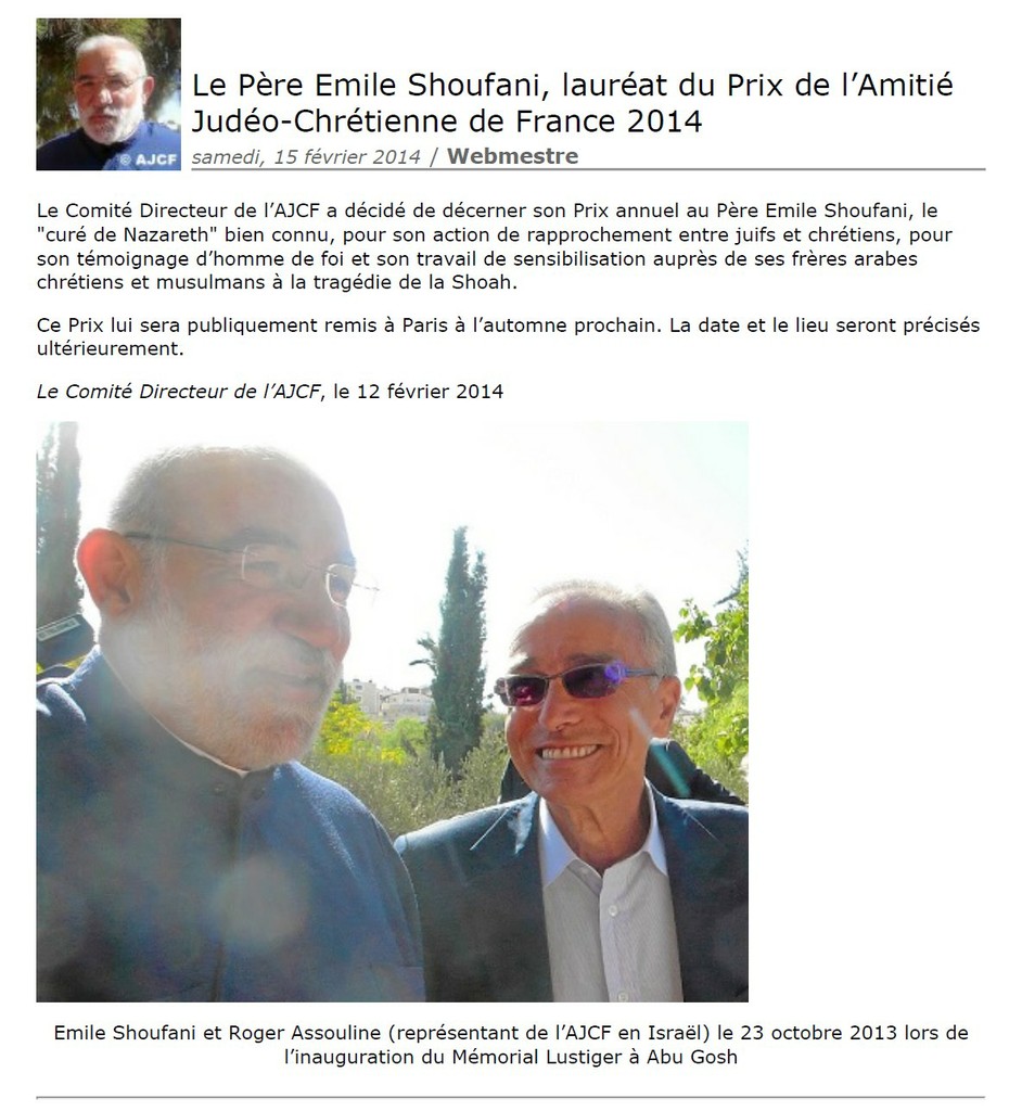 Le Père Emile Shoufani, lauréat du Prix de l’Amitié Judéo-Chrétienne de France