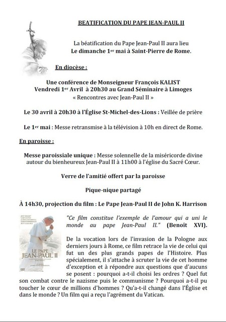 Tel : 05 55 34 17 91 - Facebook : Paroisse Saint Jean Paul II de Limoges