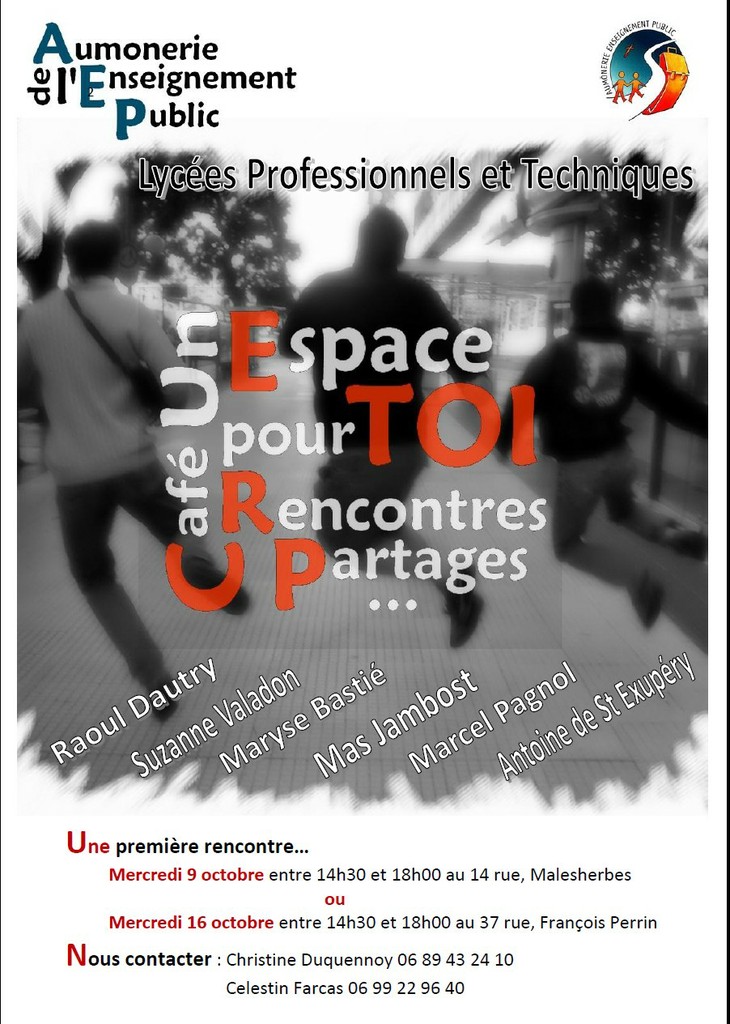 7 octobre 2013pour les lycéens de Lycées professionnels de Limoges, un espace rencontre les attend le mercredi. voir affiche jointe...